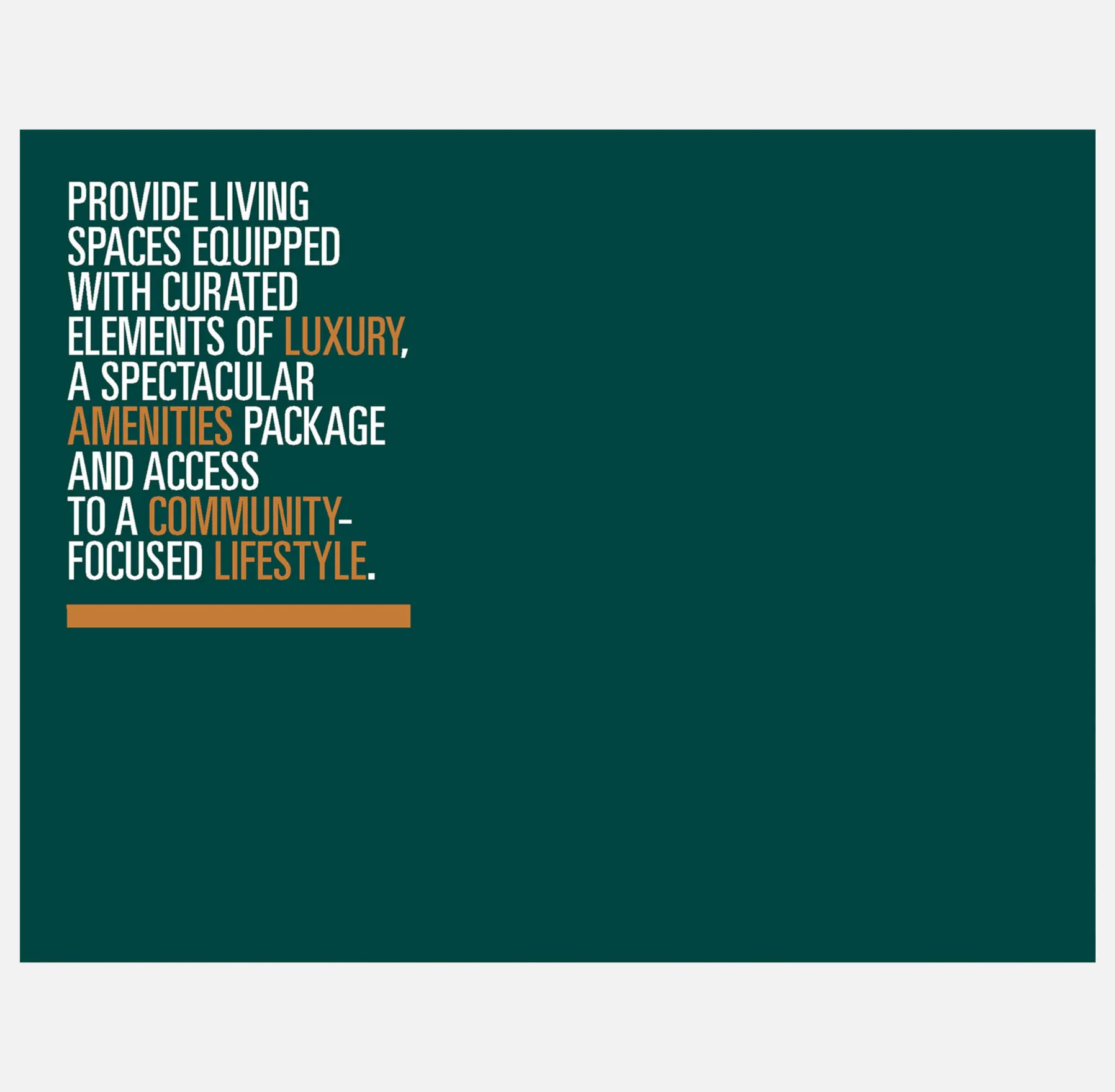 The property speaks to those looking for an aspirational lifestyle while remaining accessible to the young millennial renter. Curated elements of luxury are present in the buildings offerings and mirrored through the use of carefully chosen materials and custom flourishes throughout the signage program.