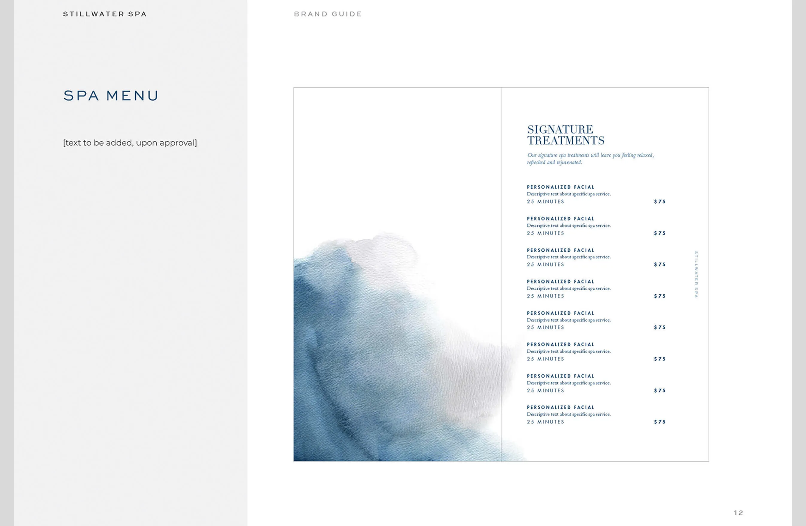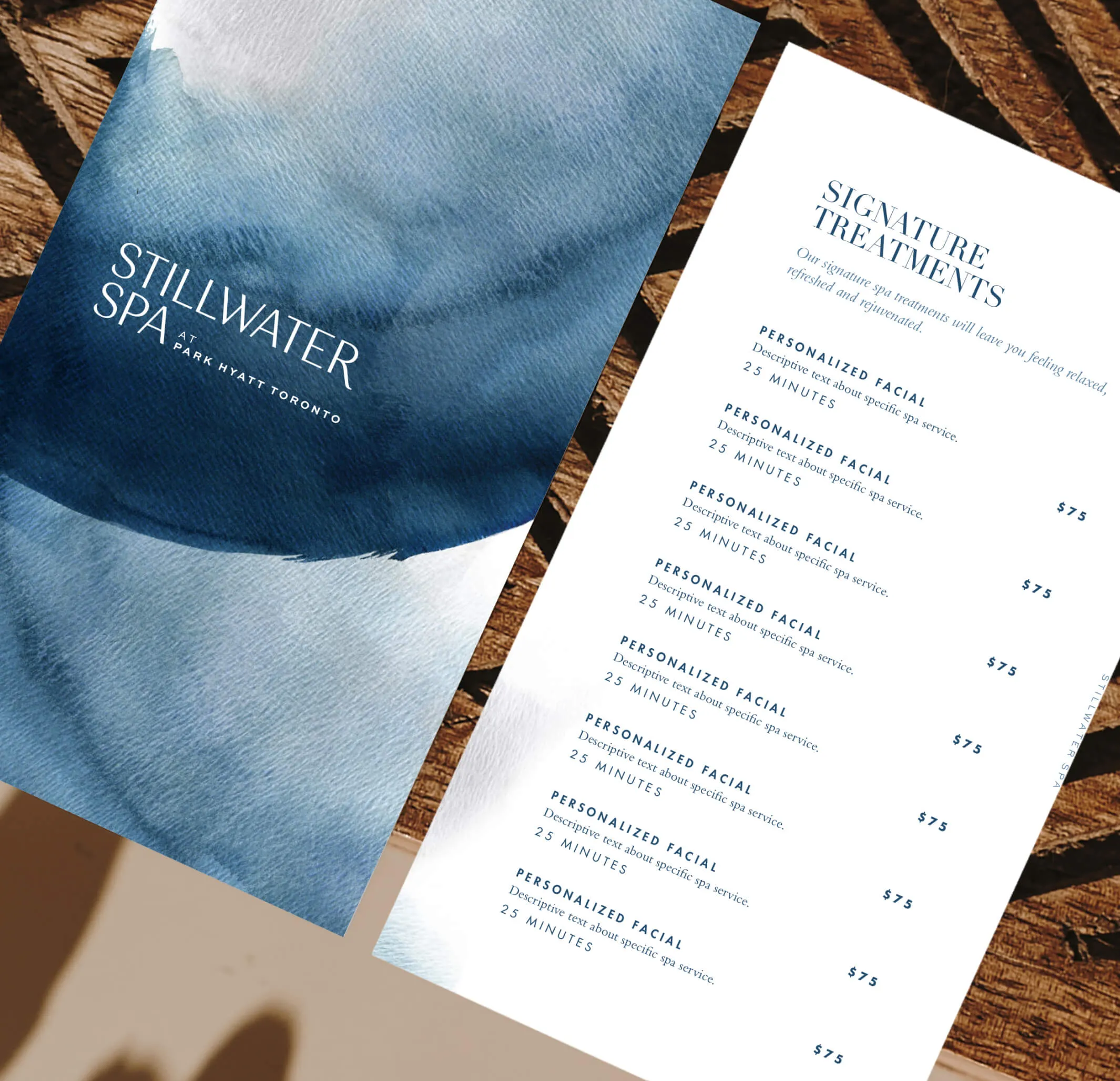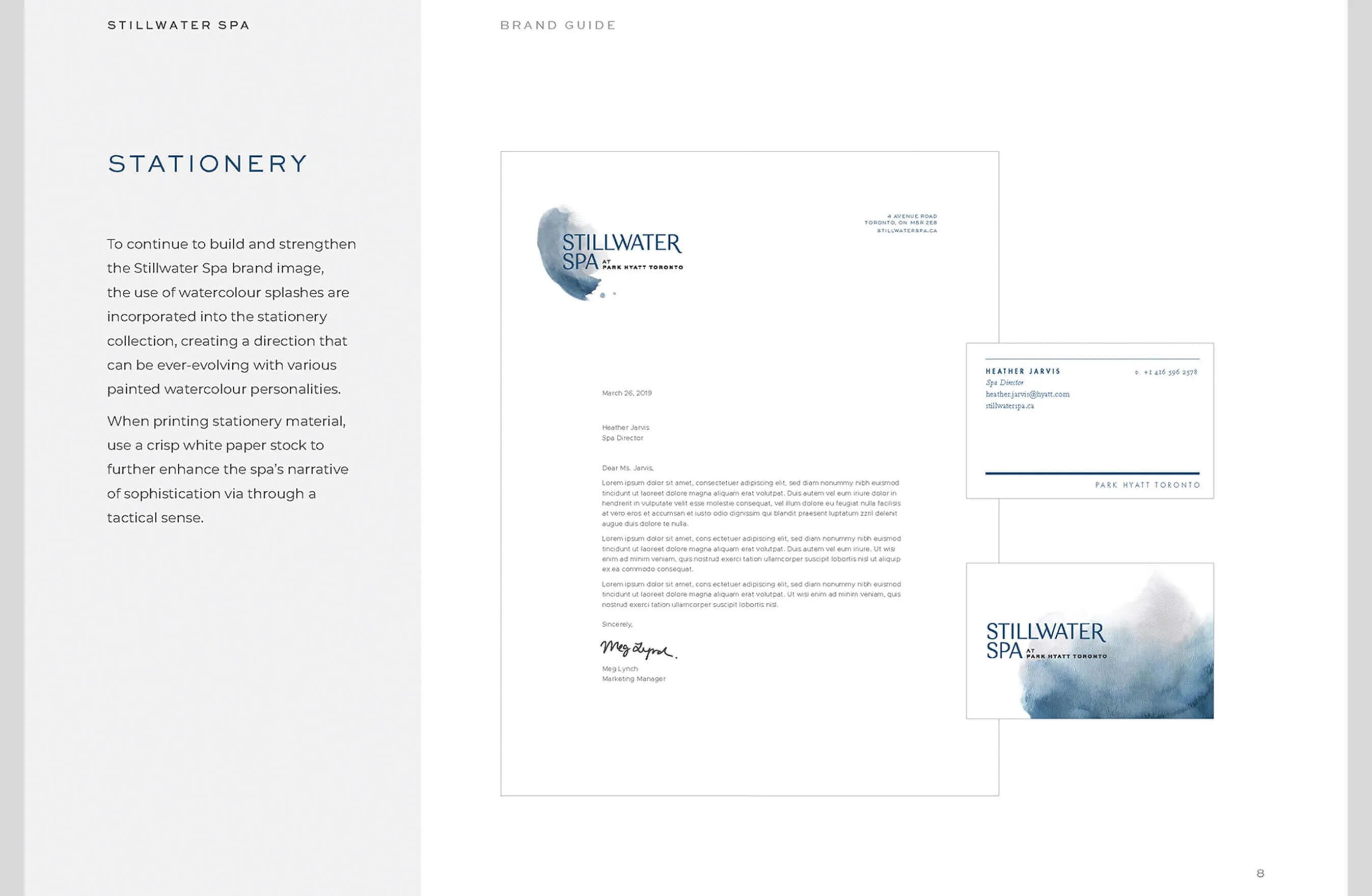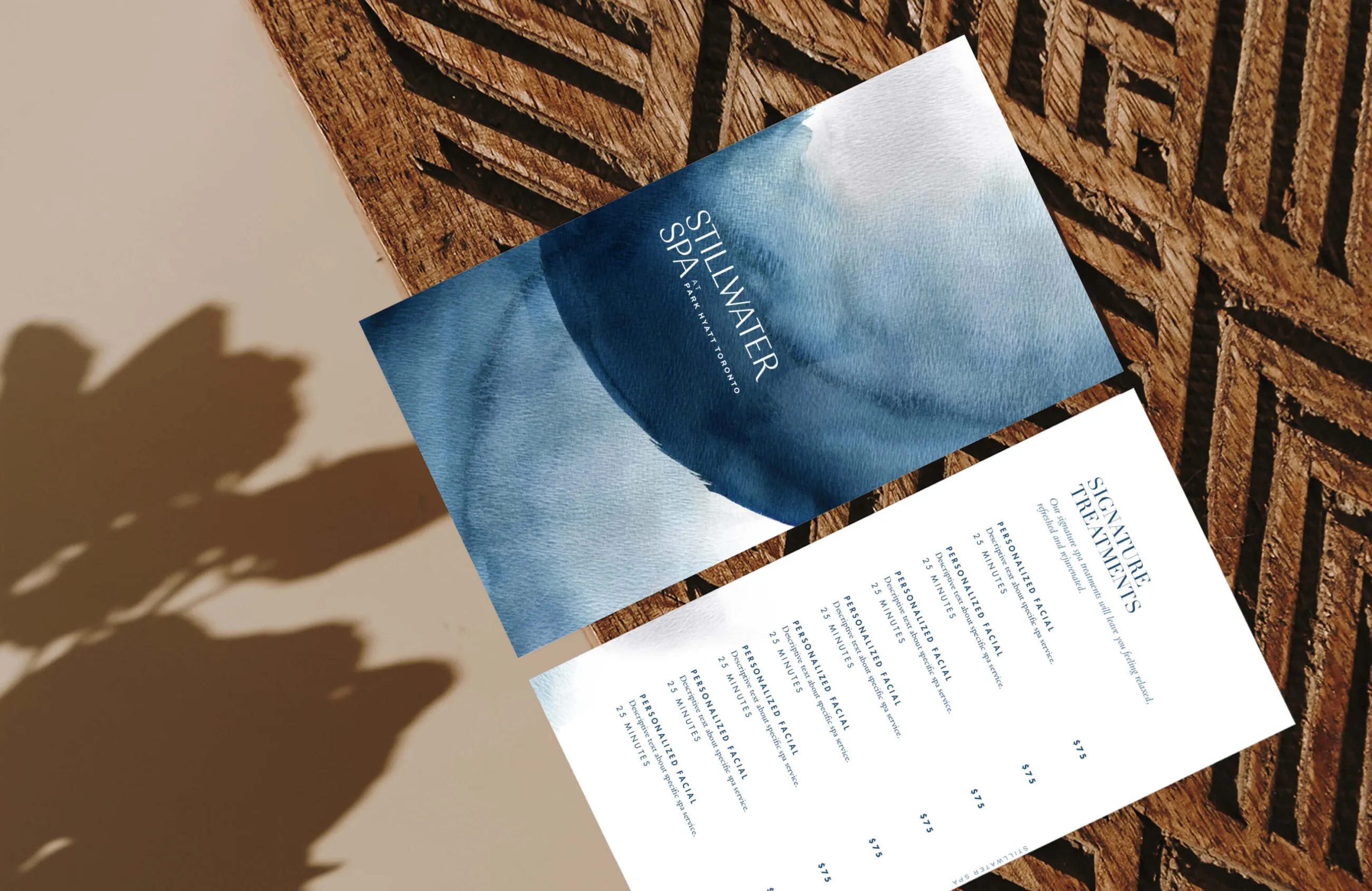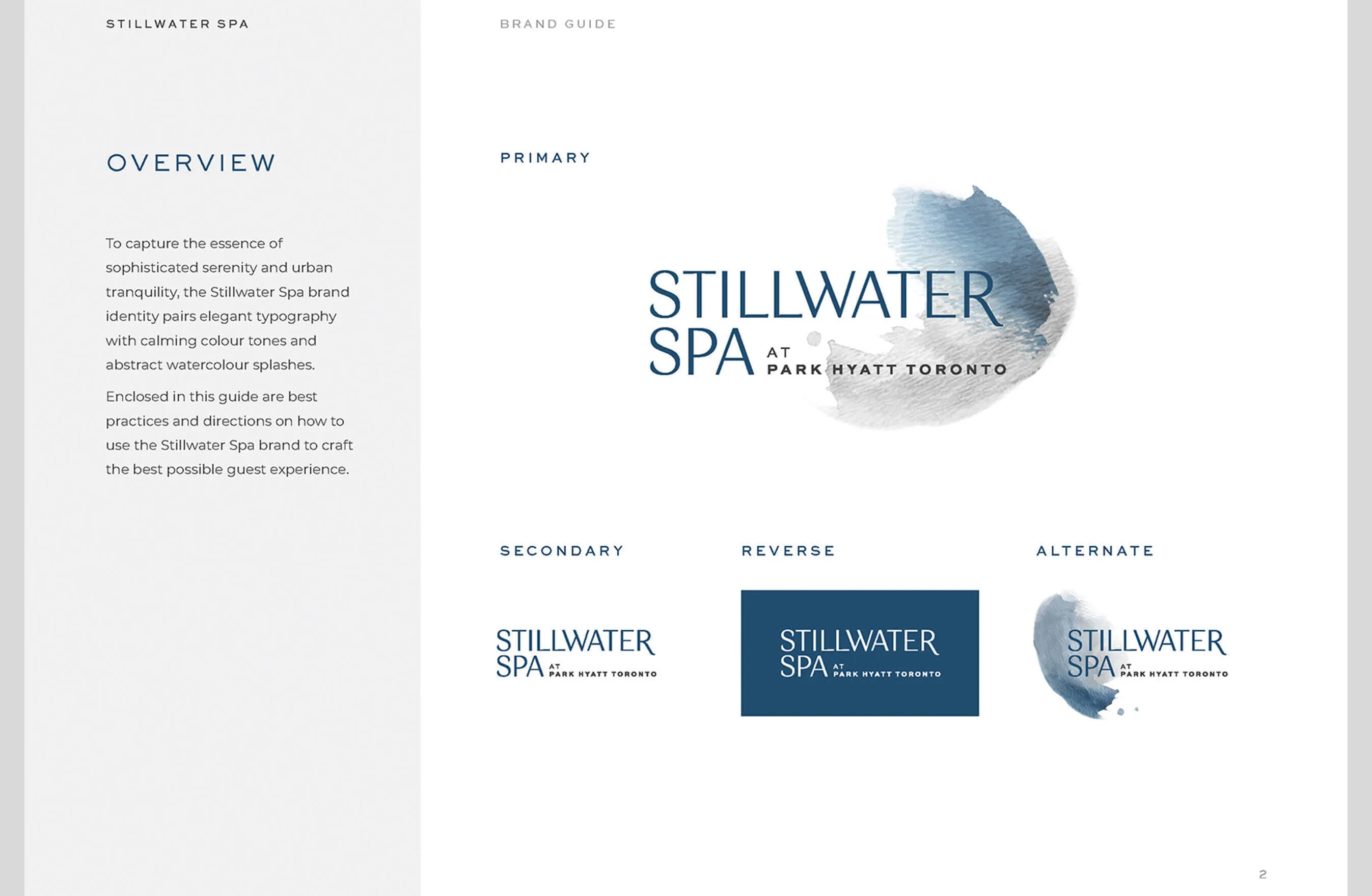 Stillwater Spa is an oasis of urban tranquillity — a sanctuary where guests discover true serenity and balance through a hyper-personalized experience. We sought to explore ways to incorporate this curated aspect of the spa into the brand. What resulted was a distinct and elegant identity with ever-evolving watercolour brush strokes, enhancing the rejuvenation and refreshing sense of the brand.
