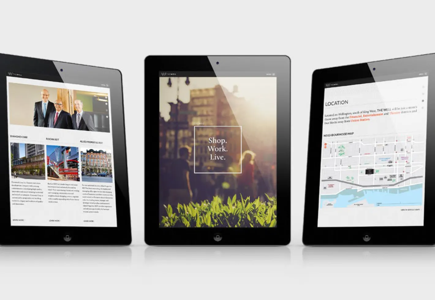 A website was created to showcase The Well’s various offerings, and provide an in-depth look at their residences, lifestyle amenities, flexible office spaces, retail locations, and the surrounding neighbourhood. Following an initial discovery phase, wireframes were created to determine an optimal strategy in presenting content and to create a dynamic and user-friendly experience.
