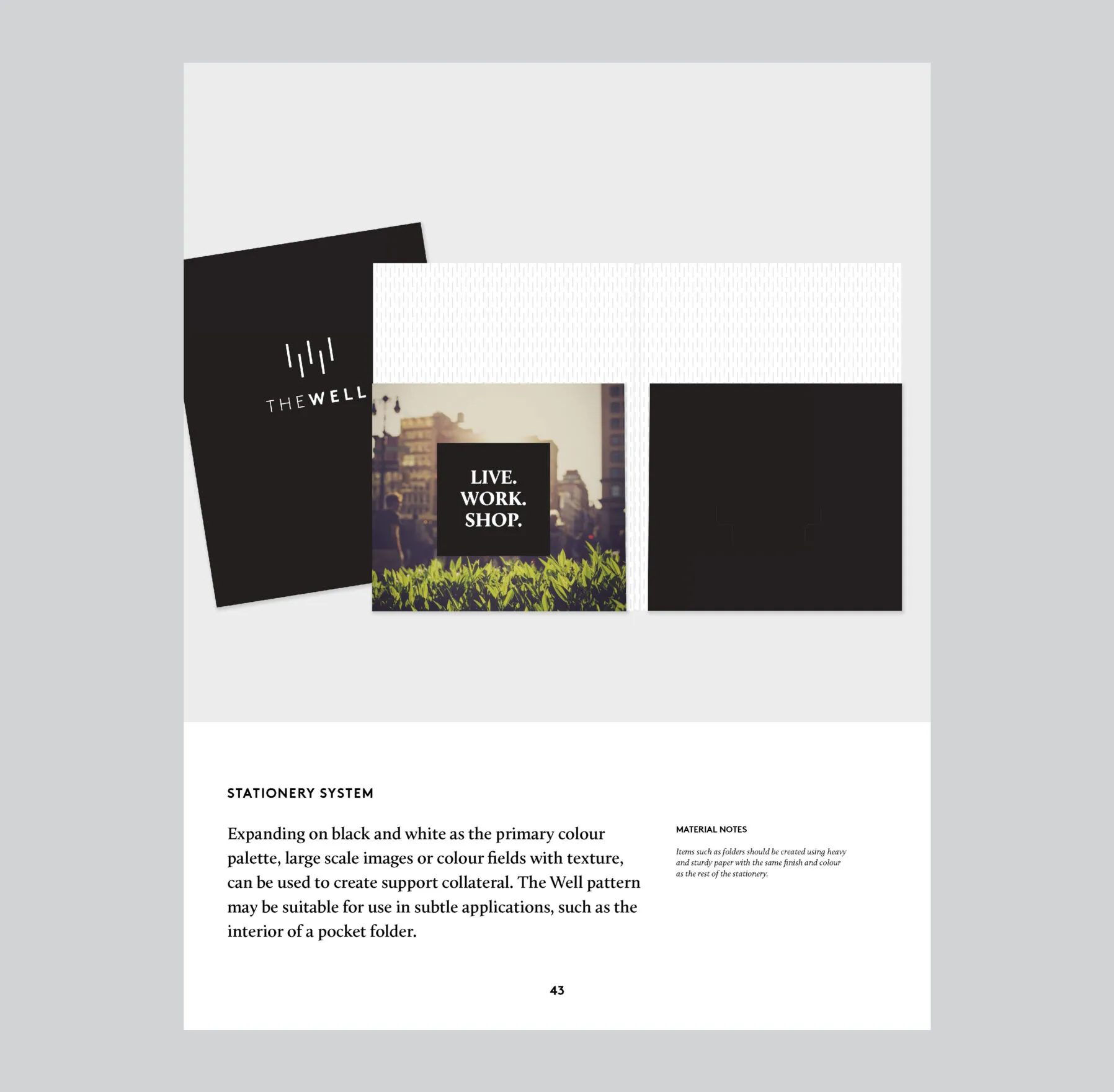 Expanding upon The Well’s existing brand guidelines created by Bruce Mau Design, additional standards were added by Forge, deepening the brand focus and addressing a broader range of brand application scenarios.